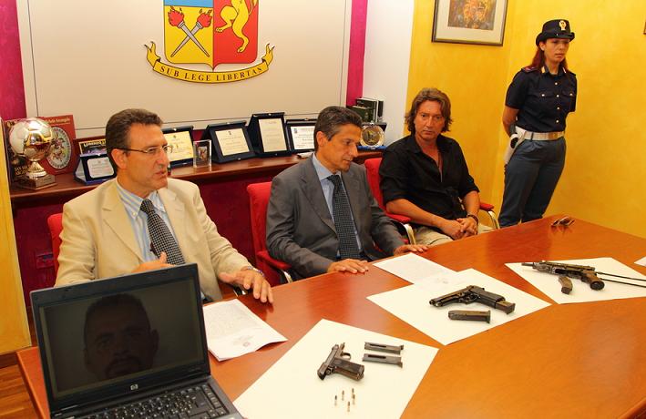 I poliziotti del commissariato di Licata hanno arrestato il presunto custode dell’arsenale della cosca mafiosa della zona. In manette, al termine di un movimentato inseguimento, è finito Angelo Sortino, 49 anni, pregiudicato. L’uomo nascondeva una mitraglietta Uzi, una pistola calibro 9 parabellum, tutte con matricola abrasa e una pistola calibro 22 oltre che diversi caricatori e munizioni. L’arsenale è stato scoperto quando i poliziotti di Licata si sono recati nell’abitazione di Sortino per effettuare una perquisizione. Capite le intenzioni, Sortino ha tentato la fuga, ma è stato bloccato dopo un inseguimento per le vie cittadine. Le armi sono state inviate nei laboratori della Polizia di Stato, per essere sottoposte a perizia balistica. La polizia ha rilevato come gli ultimi tre omicidi commessi a Palma di Montechiaro, costata la vita a Carmelo Burgio, Giuseppe Condello e Vincenzo Priolo siano stati portati a termine utilizzando proprio una mitraglietta Uzi.