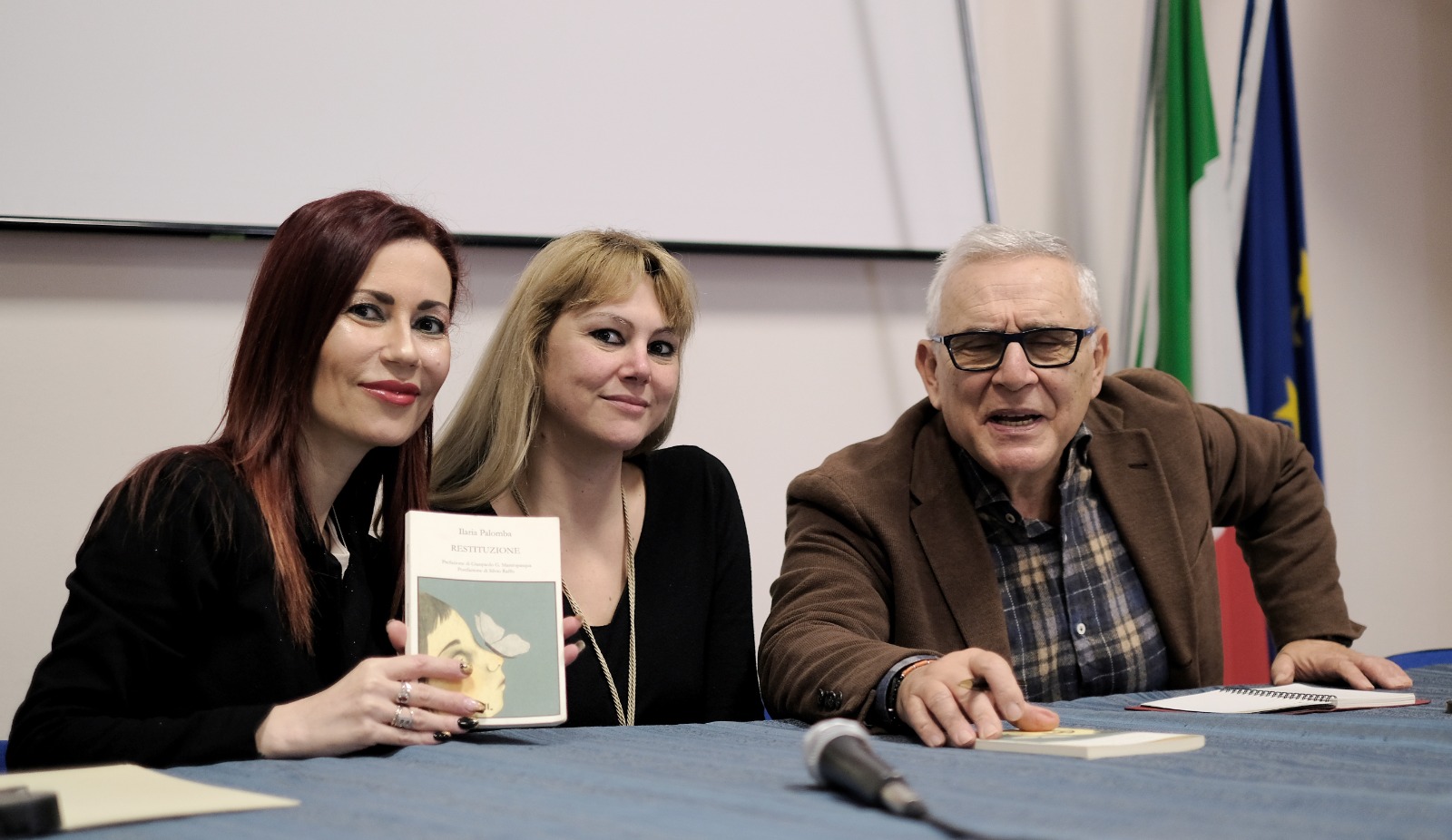 CASTELVETRANO- Mattinata intensa, ieri, nell’aula magna del liceo classico “G. Pantaleo” nell’ambito della borsa di studio Ada Arcuri, inserita nel progetto Obiettivo Donna, i cui referenti sono la scrittrice e poetessa Bia Cusumano e il professore Melchiorre Leggio. La terza tappa si volgerà il 28 aprile con la poetessa Marietta Salvo e verrà consegnata la borsa di studio. Ieri è stato presentato il libro di Ilaria Palomba, “Restituzione”, edito da Interno Libri Edizioni. Sono intervenuti l’arciprete don Giuseppe Ivan Undari, la dirigente scolastica professoressa Giulia Flavio, il referente del liceo Scienze Umane, prof. Melchiorre Leggio, i Referenti del Liceo Classico, professoresse Piera Mannino e Rosalinda Rubino. La platea era composta dagli alunni delle quinte classi del liceo Classico, Scientifico e liceo delle Scienze Umane di Castelvetrano. Era presente Filippo Cardinale, direttore del giornale online Corrieredisciacca.it e promotore della iniziativa della borsa di studio in memoria della moglie deceduta cinque anni fa per un tumore.