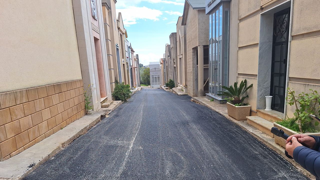 SCIACCA- Il cimitero della città è interessato da lavori di miglioria. Nuovi locali ma anche asfalto sui vialetti. “È in corso da diverse settimane un intervento importante al cimitero di Sciacca: la realizzazione di 1000 nuovi loculi. Si tratta di un progetto imponente, probabilmente uno dei più impegnativi mai realizzati dal Comune in questo luogo”, spiegano il sindaco Fabio Termine e l’assessore Fabio Leonte. Parallelamente vi è un altro intervento che riguarda la viabilità interna, con lavori di riqualificazione. “I viali sono stati asfaltati e adesso sono più sicuri, ordinati e facilmente percorribili. Abbiamo assunto un impegno con la città, prenderci cura degli spazi collettivi, soprattutto di quelli che chiedono maggior rispetto e responsabilità, in poco tempo stiamo restituendo ai cittadini luoghi più dignitosi e accoglienti da troppo tempo ignorati. Continueremo su questa strada perché c’è tanto ancora da fare”, aggiungono Termine e Leonte.