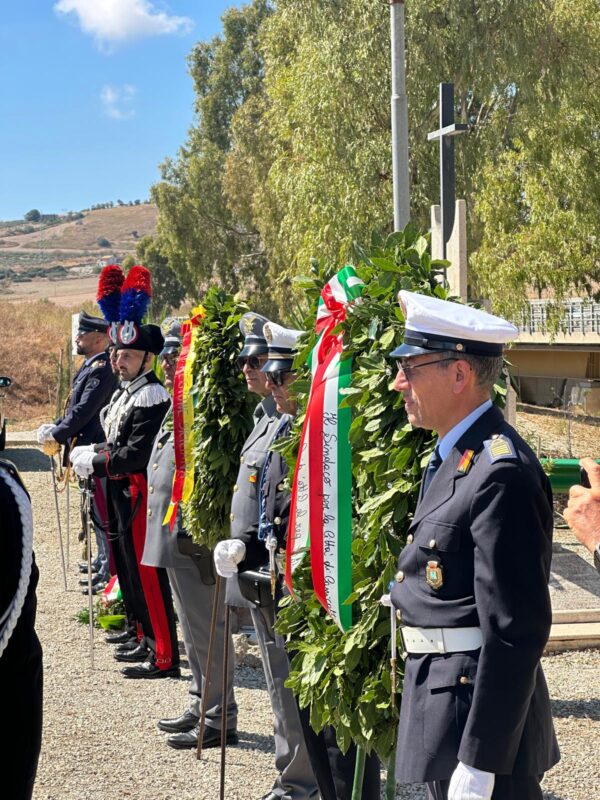 A seguire la deposizione delle corone di alloro da parte delle autorità civili, militari, alla Stele che ricorda il suo assassinio sulla ex SS640 in contrada Gasena, sulla terra che ha raccolto il sangue del beato Rosario nel “Paco Livatino”. Il terzo appuntamento della giornata è stato il Giubileo degli Operatori della Giustizia alle ore 19:00 nella Chiesa Santa Chiara. n contrada Gasena, al termine della deposizione delle corone di alloro da parte delle autorità civili, militari, nel Paco Livatino, curato dai soci Co.N.Al.Pa della Sezione agrigentina, è stata svelata l’opera donata dal maestro Cosimo Allera di Gioia Tauro