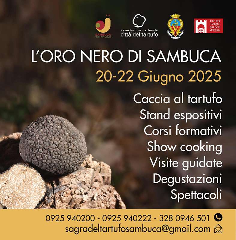 Torna per il secondo anno consecutivo la Sagra del Tartufo a Sambuca di Sicilia, paese noto per la varietà di tartufi che crescono nei suoi terreni, tra cui il Nero Invernale, il Bianchetto, l’Estivo o Scorzone e l’Uncinato. Una festa che, dal 20 al 22 giugno, celebra non solo il tartufo siciliano ma anche Sambuca di Sicilia, il borgo che nel 2022 è entrato nell’Associazione Nazionale Città del Tartufo insieme ai vicini Lucca Sicula e Burgio. “Vogliamo continuare il percorso di promozione e di valorizzazione di un ulteriore prodotto che caratterizza Sambuca – dice il sindaco Giuseppe Cacioppo – e che innesca ulteriori processi di crescita e nuove economie. Un prodotto a “km 0” che sempre più ci avvicina alla tradizione del nostro territorio e alle sue tipicità». Nel corso della tre giorni si susseguiranno show cooking, in cui chef locali dimostreranno la versatilità del tartufo in cucina; degustazioni che permettono di assaporare il tartufo e i piatti tipici della cucina siciliana; eventi, spettacoli e intrattenimento per tutta la famiglia.