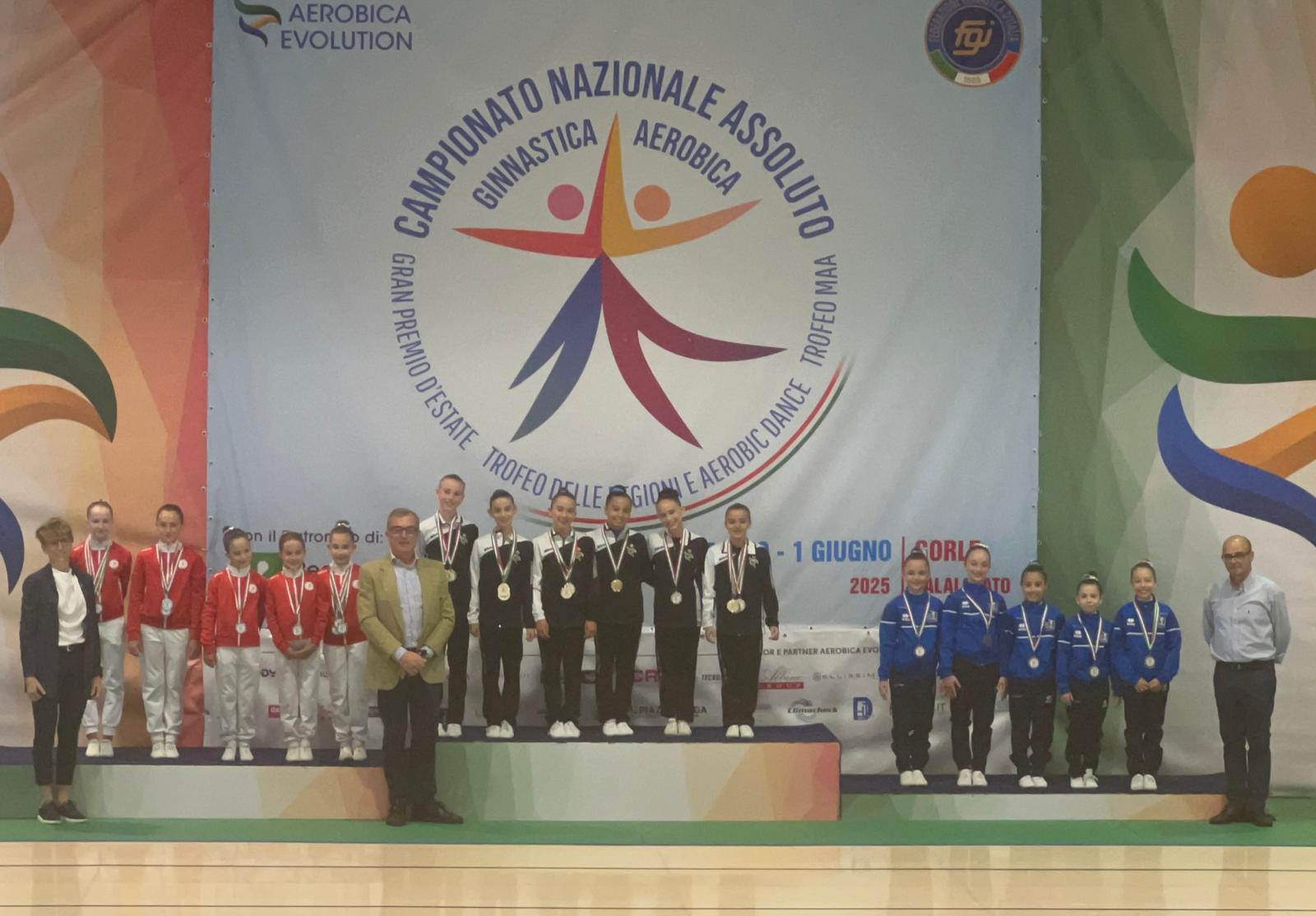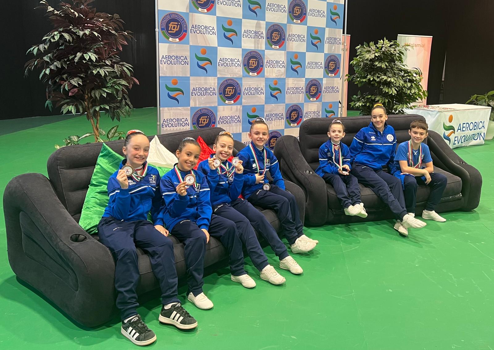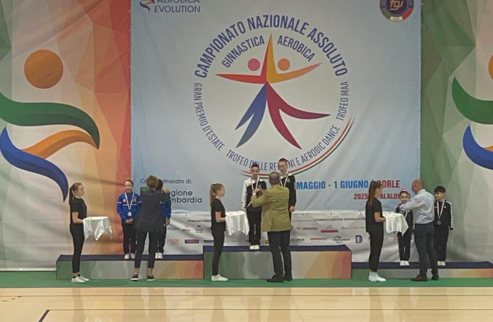 SCIACCA. L’ultimo evento agonistico di una stagione densa di appuntamenti nazionali, regala al settore aerobica dell’Asd Discobolo Sciacca altri prestigiosi risultati. Al Campionato Nazionale Gold Assoluto Trofeo MAA di Ginnastica Aerobica, svoltosi nello scorso week end a Gorle, il sodalizio saccense conquista due medaglie d’argento e una medaglia di bronzo. Sul secondo gradino del podio sono saliti Enea Pifferi nella categoria Individuale maschile e lo stesso atleta con Alice Ciaccio nella Coppia mista. La medaglia di bronzo è arrivata nella categoria Gruppo con Bianca Lazzara, Lara Abruzzo, Clara Nigro, Maria Chiara Bono e Alice Ciaccio.