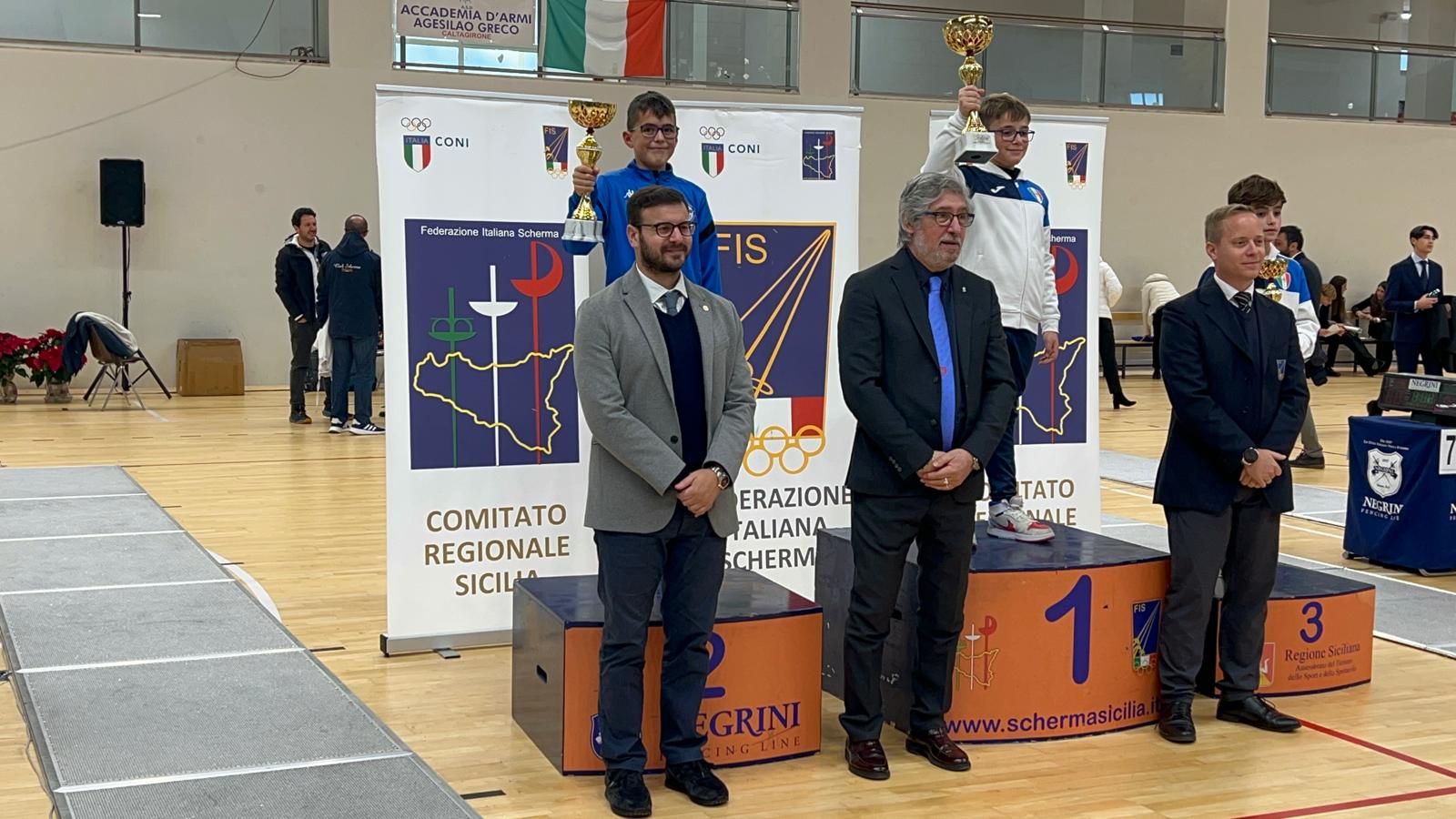 SCIACCA. La 2ª Prova Regionale GPG di scherma, disputata al Palazzetto dello Sport di Caltagirone, ha visto la partecipazione di 210 giovani schermidori provenienti da tutta la Sicilia nelle discipline di sciabola, fioretto e spada. L’Asd Discobolo si è distinta con una serie di risultati di rilievo nelle categorie giovanili della sciabola: