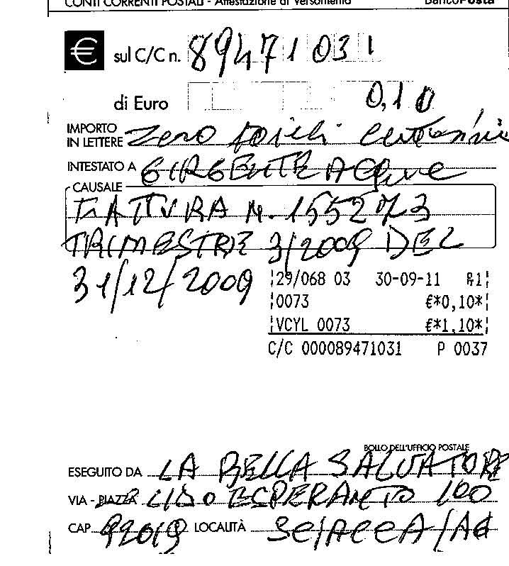 Girgenti Acque è scrupolosa. Deve incassare 10 centesimi e invia la bolletta. Così, l’impiegato dedica tempo per la fatturazione dei 10 centesimi, il cittadino deve perdere del tempo alla posta per pagare la bolletta di 10 centesimi, pagando un euro e cinquanta di tassa.