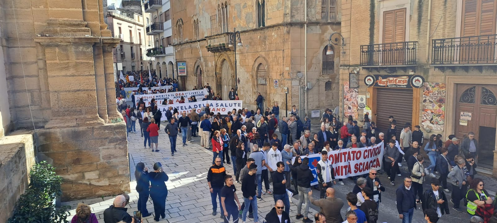 Oggi il corteo di protesta nel centro storico di Sciacca per richiedere servizi migliori per l’ospedale di Sciacca. Una mobilitazione molto partecipata, con adesioni che arrivano dal mondo della scuola, delle imprese, dello sport e dell’associazionismo in genere. diciannove i sindaci presenti alla manifestazione oltre ai deputati Pace, La Rocca Ruvolo e Catanzaro.