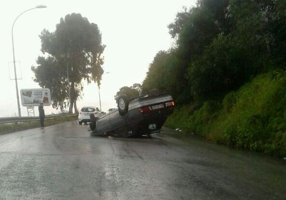 Un saccense di 80 anni, F.F., è rimasto lievemente contuso dopo che la sua auto, una vecchia Alfa 75, si è capovolta su se stessa.