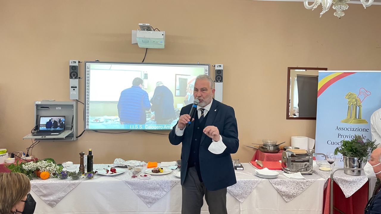 Nella sala ristorante dell’Istituto, con la partecipazione degli Studenti e dei Docenti iscritti alla Federazione Italiana Cuochi, dopo i saluti del dirigente Caterina Mulè, gli chef hanno preparato una main course di manzo con abbinamento in contrapposizione al “Fontana dei grilli“/19 di Perricone della azienda vinicola Funaro, presentato egregiamente dal Sommelier intervenuto.