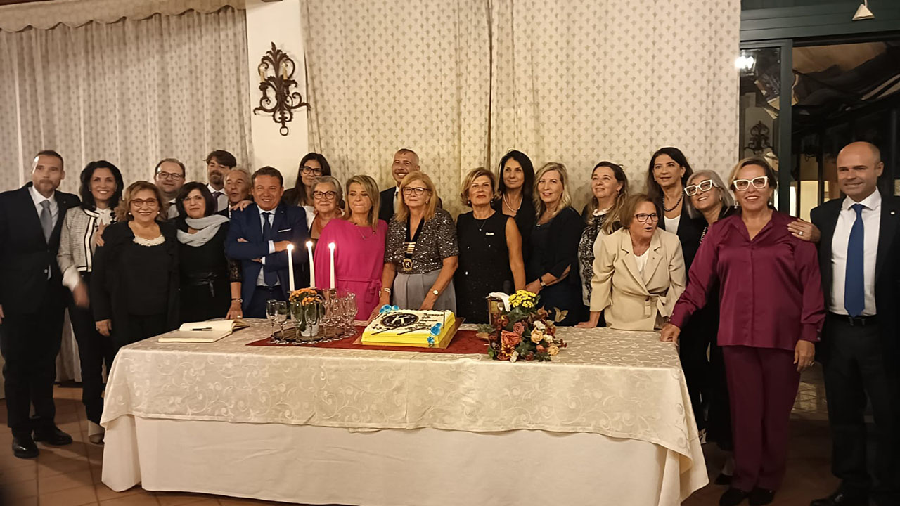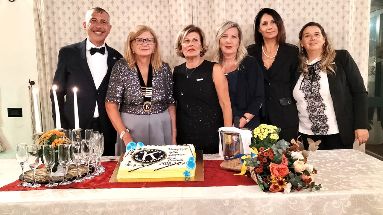 i soci, gli ospiti istituzionali, il Luogotenente Governatore Giuseppe Mauceri e l’assessore Simone Di Paola, che ha portato i saluti dell’amministrazione comunale, nonché di altri soci dei club della divisione 4 Sicilia Kiwanis, il presidente uscente avvocato Paolo Livio ha tracciato un bilancio delle attività svolte, ricordando i numerosi service realizzati sul territorio, tutti ispirati ai valori di solidarietà, inclusione e attenzione alle fasce più fragili della comunità. Un ringraziamento particolare è stato rivolto ai soci e ai collaboratori che, con spirito di servizio, hanno contribuito al successo delle iniziative promosse dal club. Il momento clou della cerimonia è stato il passaggio ufficiale della campana e delle insegne alla nuova presidente, avvocato Virginia Sammarco che ha ringraziato i soci per la fiducia accordata, esprimendo emozione e determinazione per il nuovo incarico. La neo presidente ha sottolineato la volontà di proseguire il cammino di solidarietà e impegno sociale tracciato dal club, con particolare attenzione ai bisogni dei bambini e delle famiglie del territorio, in linea con la missione internazionale del Kiwanis: “Servire i bambini del mondo”.
