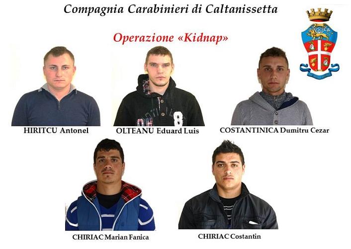 Con l’accusa di sequestro di persona e lesioni aggravate i carabinieri hanno arrestato oggi tra Riesi e Sambuca di Sicilia Marian Fanica Chiriac , 33 anni, Antonel Hrictu , 23 anni, Eduard Luis Olteanu, 25 anni,Dimistru Cezar Costantinica, 20 anni, e Constantin Chiriac, 24 anni. Gli indagati durante le ultime festività natalizie avrebbero sequestrato e seviaziato un loro connazionale che era in vacanza a Riesi, nel nisseno.
