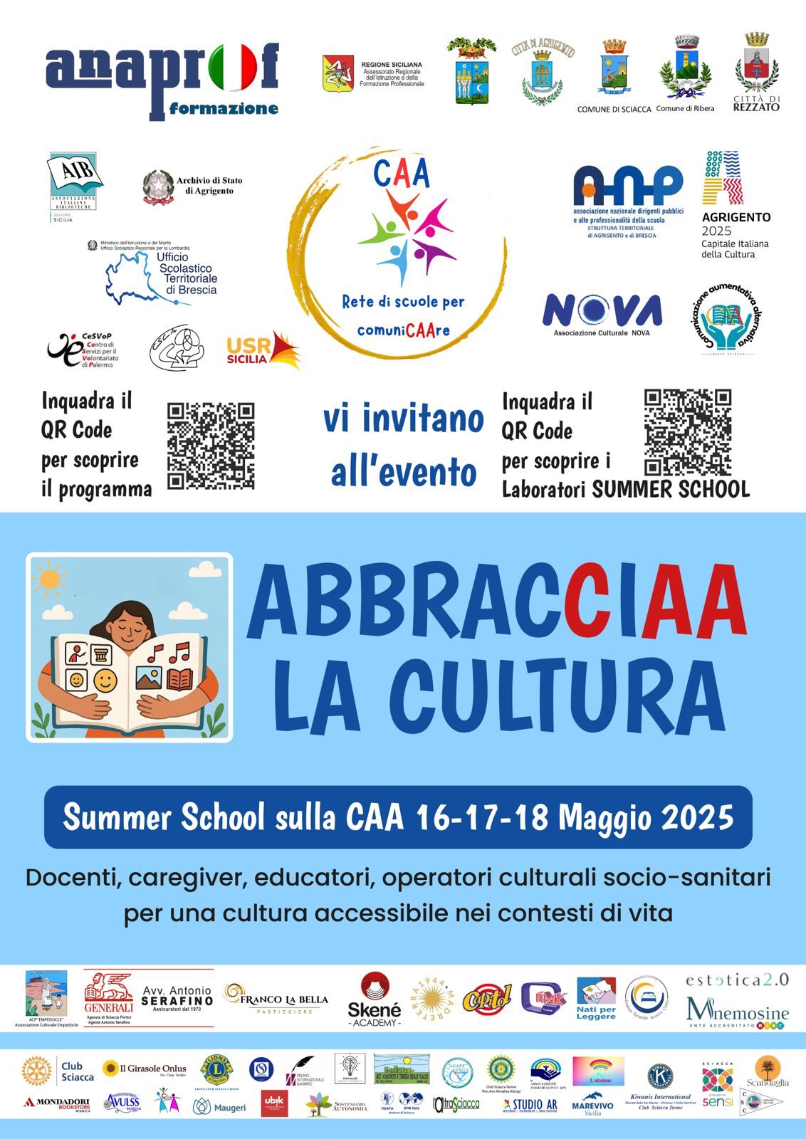 SCIACCA. Presentato questa mattina all’IISS Don Michele Arena l’evento AbbraCiAA la Culturae – Summer School sulla Comunicazione Aumentativa Alternativa”. Le aule magne dell’Arena e del plesso Miraglia ospiteranno l’iniziativa che prevede una serie di dibattiti e laboratori che si svolgeranno a Sciacca dal 16 al 18 maggio. Un progetto che mira a promuovere la cultura dell’inclusione e della comunicazione accessibile a tutti, nei diversi contesti di vita, dal bar alla palestra, dal panificio alla segnaletica stradale, a beneficio, dell’intera comunità, nessuno escluso.