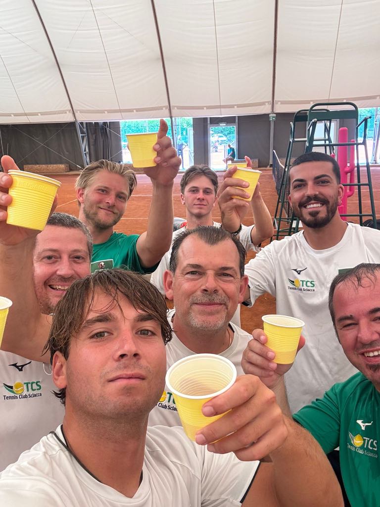 SCIACCA. Con una ulteriore prova nel match di ritorno, il Tennis Club Sciacca ha conquistato la storica promozione in Serie B2 nazionale. Dopo il rotondo 6-0 ottenuto nella finale di andata giocata in casa, il ritorno disputato sui campi in terra battuta dello Sporting Life Center di Breda di Piave (Treviso) si è trasformato in una pura formalità: i successi nei primi due singolari firmati dal trentenne della Repubblica Ceca Dominik Recek (numero 685 Atp) e Christian Fanara, hanno messo subito in cassaforte il passaggio di categoria. Un risultato atteso e meritato, che premia il lavoro del team guidato dal capitano Enzo Colletti e presieduto da Vincenzo Sclafani, costruito attorno a un gruppo affiatato e competitivo. Dopo due stagioni in cui la promozione era sfuggita di un soffio, il traguardo è ora realtà. Nel corso della stagione, hanno contribuito al successo con le loro prestazioni anche Gilbert Soares Klier (Brasile), Stepam Baum (Repubblica Ceca numero 1305 Atp), Gabriele Dolce, Santiago Alvarez (Argentina), Ramiro Gilles (Argentina) e Domenico Caracappa.